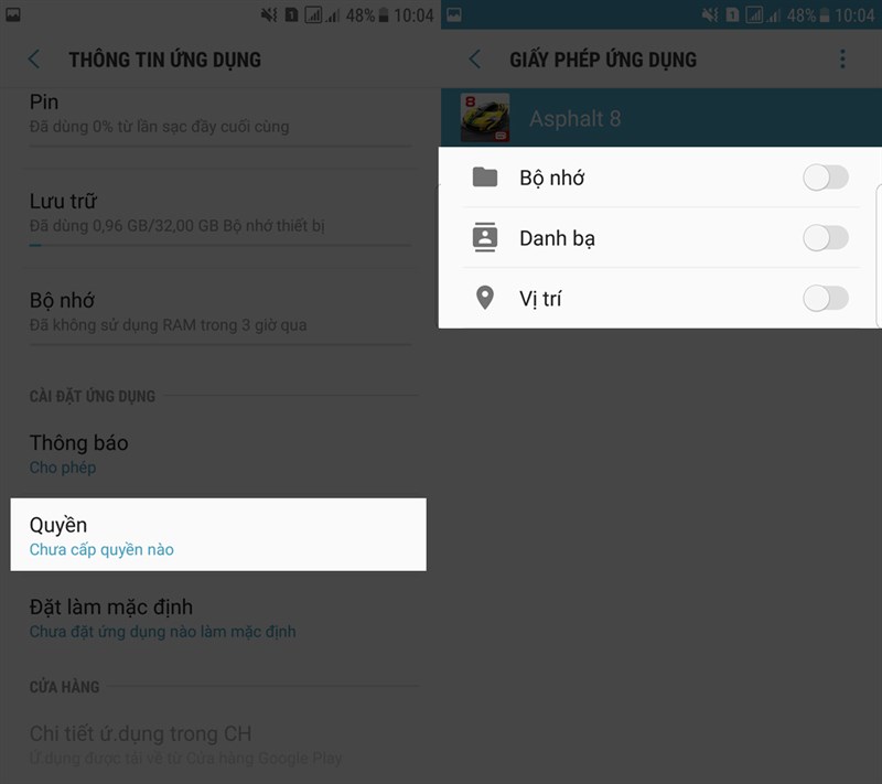 Android 6.0 cho phép người dùng quản lý quyền truy cập bằng cách : vào cài đặt => ứng dụng => chọn vào ứng dụng => quyền => tắt quyền
